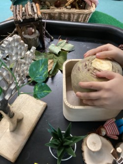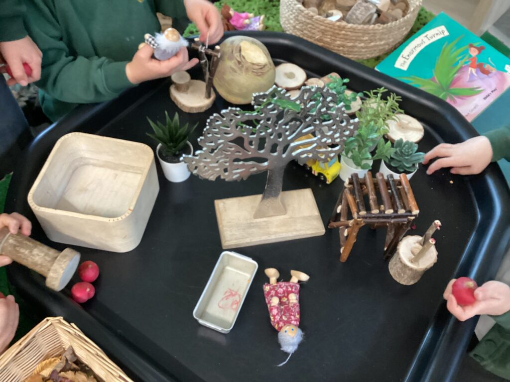 Wrens have begun to immerse themselves in all things ‘Enormous Turnip’. We are building our own setting for the story using loose parts and our very special prize turnip!